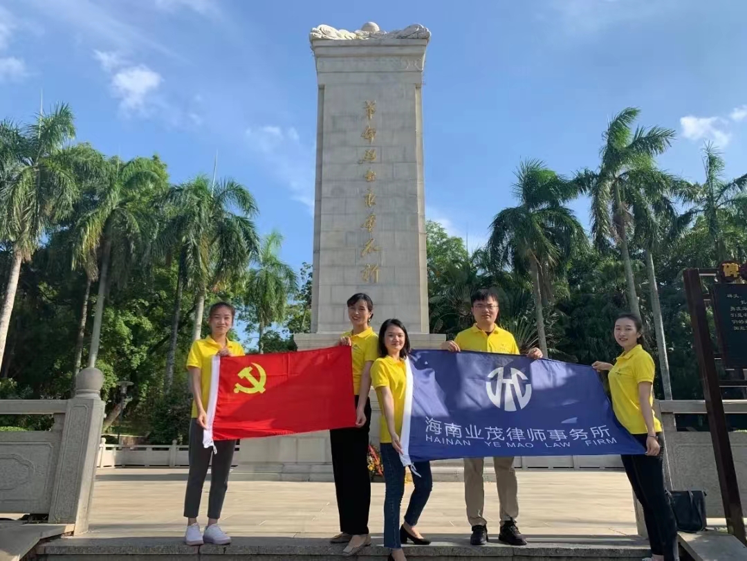 2020年7月1日,海南业茂律师 事务所党支部开展庆祝建党99周年主题党日活动——至海口人民公 园参观冯白驹将军纪念亭和海南革命烈士纪念碑。