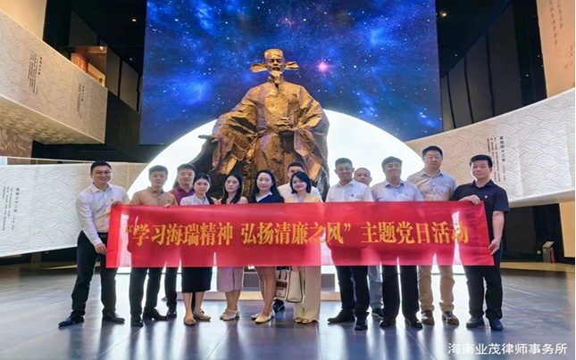 (2) 2023 年 11 月9日,海南业茂律师事务所党支部与海南行一律 师事务所党支部联合组织到海瑞文化公园参加“海瑞精神 弘扬清廉 之风”主题党日活动。