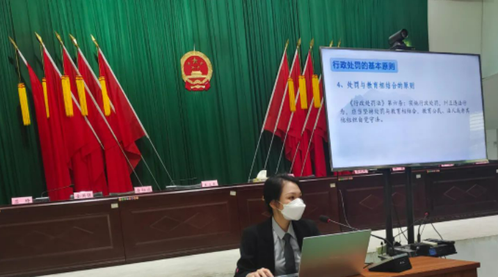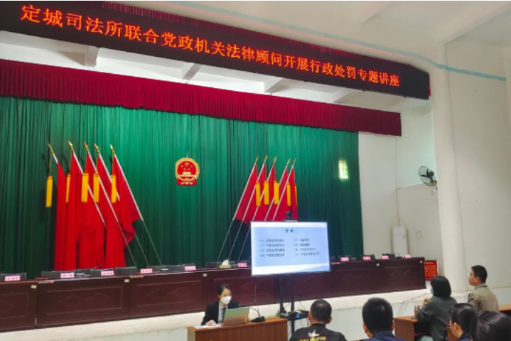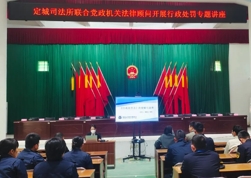 2023年2月23日上午,为了积极响应全面建设法治国家的号召,深入学习宣扬习近平法治思想,定安县定城镇司法所联合党政机关法律顾问开展了行政处罚专题讲座,业茂所曾昭云律师、蔡文欣律师认真准备了本次讲座课件,并由曾昭云律师在定安县定城镇人民政府进行授课,详细讲解了《<行政处罚法>的理解与适用》的有关法律知识。此次专题讲座由定安县定城镇司法所的本次会议负责人徐超主持,参加讲座的人员有定安县定城镇行政执法中队中队长吴青峰及定城镇执法中队众多工作人员。