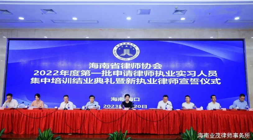 2023年6月20日下午,海南省律师协会在海南大学国际交流中心举行2022年度第一批申请律师执业实习人员结业典礼暨新执业律师宣誓仪式和律师执业实习人员集中培训“优秀学员”的表彰。