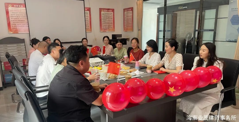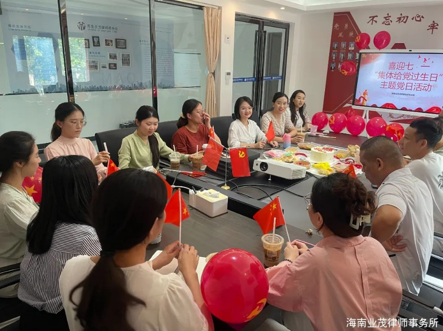 为热烈庆祝建党102周年华诞,激励广大党员干部坚守初心担当使命、砥砺奋进新征程,2023年6月30日下午,海南业茂律师事务所党支部开展“喜迎七一,集体给党过生日”主题党日活动,活动由海南业茂律师事务所党支部书记周仙同志主持,全所党员干部参加。
