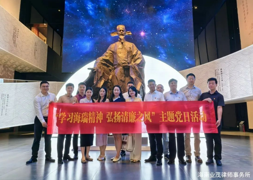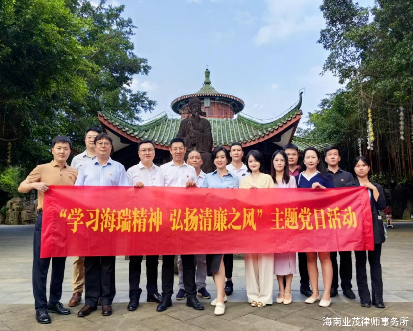 为进一步学习贯彻习近平新时代中国特色社会主义思想主题教育,2023年11月9日,海南业茂律师事务所党支部与海南行一律师事务所党支部联合组织到海瑞文化公园参观学习“海瑞精神 弘扬清廉之风”主题党日活动。此次活动形式也是对以往的创新,我所党支部首次与外所党支部联合组织活动,加强了党员之间的凝聚力。