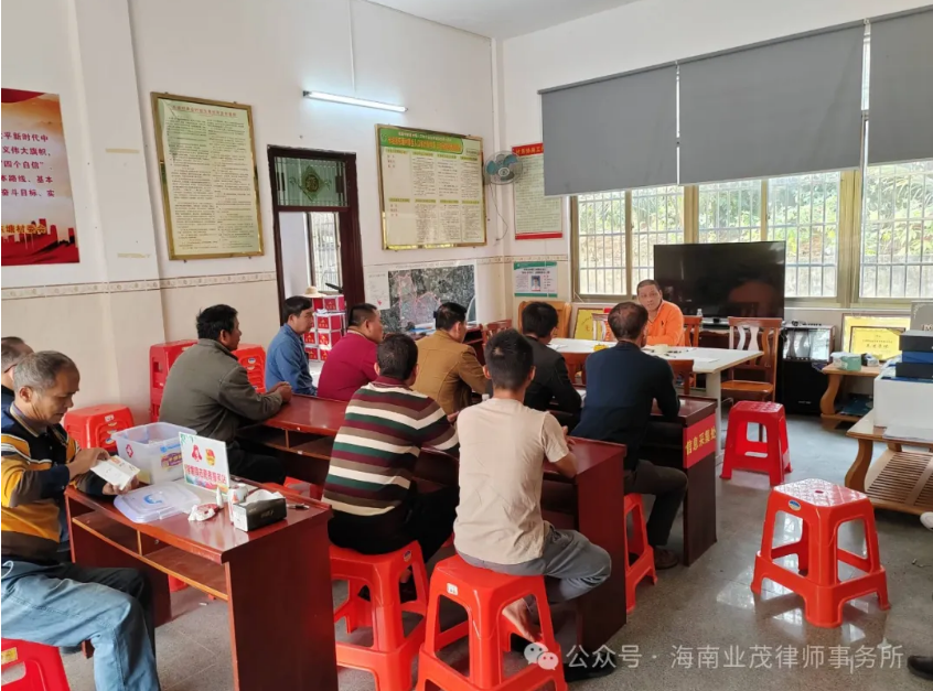 为巩固拓展“百所进千村”民法典普法成果,探索建立常态化长效化工作机制,2024年11月中下旬,海南业茂律师事务所赵海律师前往琼海市长坡镇多异村、文子村、孟文村、东塘村开展“百所进千村”民法典普法活动回访工作。 活动开始,赵海律师深入农村地区进行实地走访,与村民进行面对面交流,收集村民对民法典的认知情况,以及他们在日常生活中运用民法典解决实际问题的情况。并邀请村民代表和基层干部参加座谈会,就活动效果、问题与建议进行深入讨论和交流。 随后,赵海律师用通俗易懂的语言为村民们详细解读了有关二十届三中全会重点指导思想,帮助村民们学习了解党的最新政策和方针。除此之外,赵海律师结合律师所在的行业,着重解读了二十届三中全会对法治建设的论述,强调法治是中国式现代化的重要保障,必须坚持依法治国,在法治轨道上深化改革、推进中国式现代化,做到改革和法治相统一,重大改革于法有据、及时把改革成果上升为法律制度。这就要求律师在工作中,要始终坚定法治信仰,积极维护宪法权威,更加坚定地维护法律的公平正义,为良好的法治秩序贡献力量。 活动最后,赵海律师还为村民们提供公益法律咨询,通过电话、微信、现场解答等方式,对村民群众提出的有关法律问题,结合自身多年执业经验为村民们提供专业法律解答,帮助他们释疑解惑。 “百所进千村”民法典普法活动是一项重要的法律宣传活动,旨在提升农村地区全民法治素养,增强村民学习运用民法典的能力,助力基层依法治理和法治乡村建设。通过此次回访工作,可以进一步了解“百所进千村”民法典普法活动的实际效果和存在的问题,为今后的普法工作提供更加精准和有力的支持,为海南自由贸易港建设营造良好的法制化营商环境。