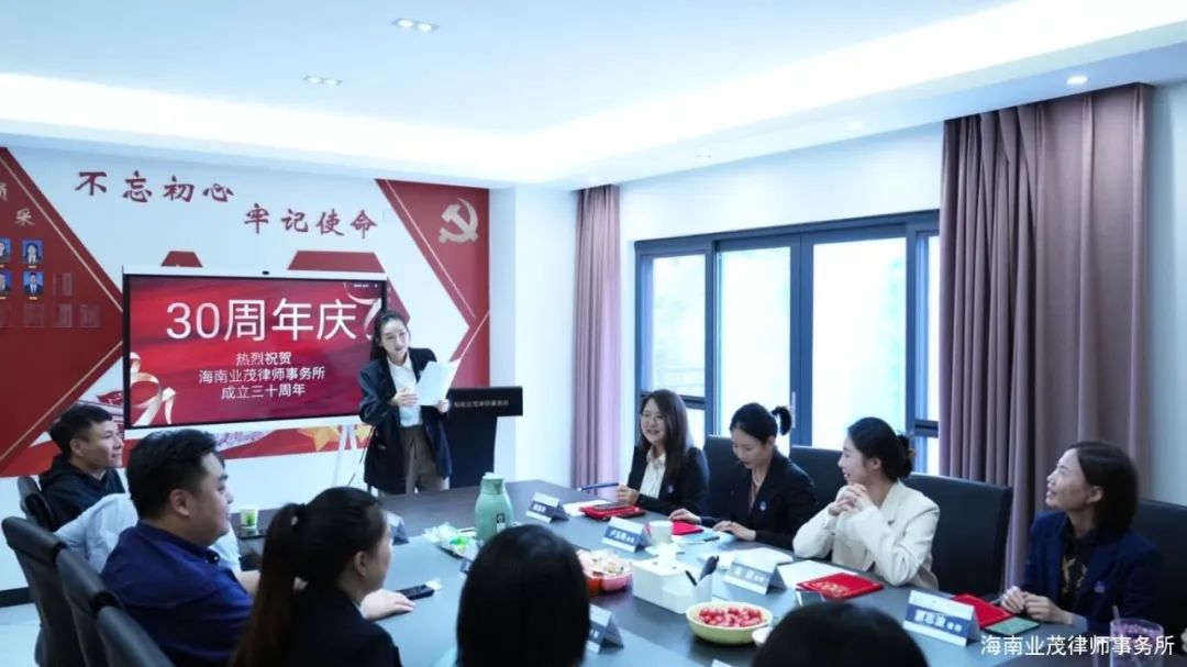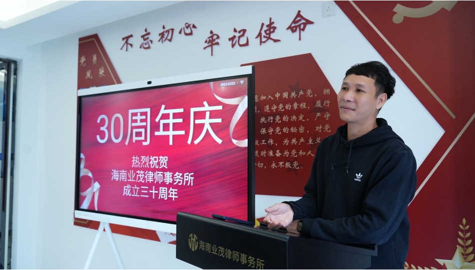 时光荏苒,岁月如梭,转眼间海南业茂律师事务所已经走过了30个年头。2024年12月12日,海南业茂律师事务所洋溢着浓郁的节日气氛,在于欢主任的带领下,律所全体人员齐聚一堂,在二楼党建会议室举办30周年庆典,共同庆祝业茂律所30周岁生日!