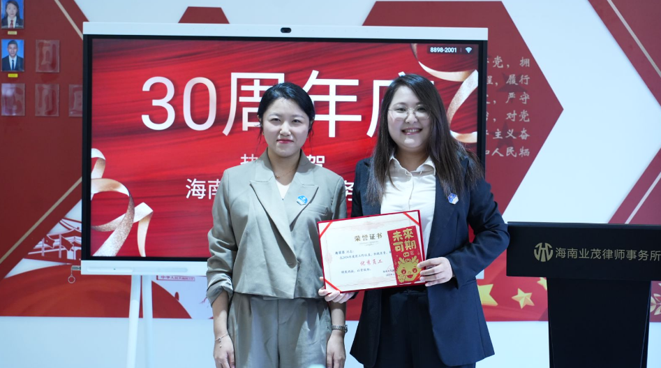 表彰仪式上,周仙书记、于欢主任先后向蒙志波律师、冯欣律师颁发了“优秀律师奖”、向卢玉燕律师颁发了“最佳贡献奖”、向杨菲菲同志颁发了“最佳员工奖”,这份荣誉,不仅承载着对获奖者个人卓越成就的认可与赞赏,更凝聚着对全体业茂人携手并进、共同奋斗的崇高敬意与真挚感谢。