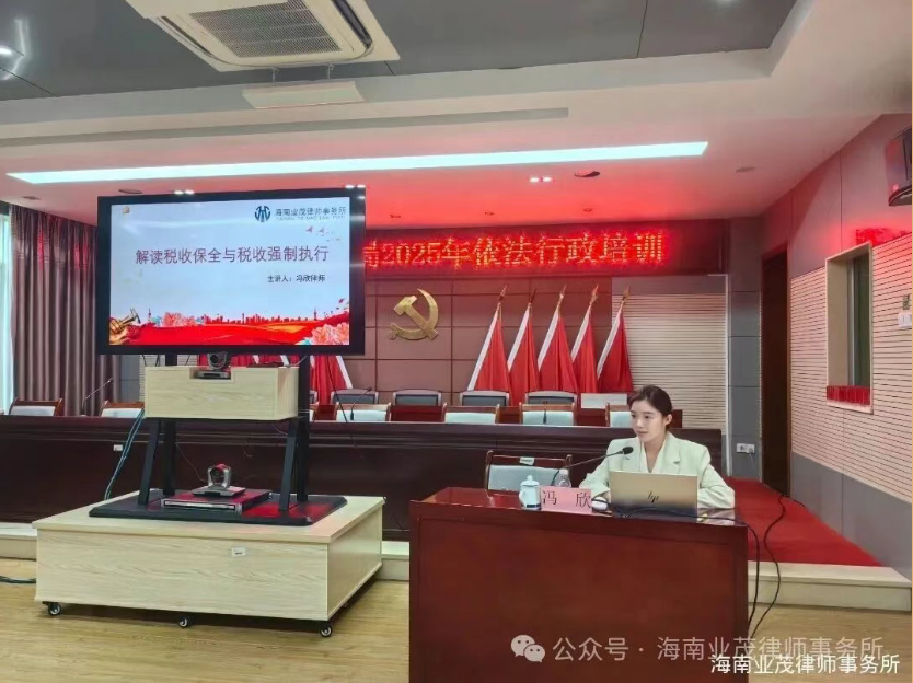 2025年12月4日,迎来了第十二个国家宪法日。宪法作为国家的根本大法,是税收法治的根本遵循,而依法纳税是每个公民和企业的宪法义务。为深入贯彻宪法精神,筑牢税收法治根基,我所冯欣律师应邀为五指山市税务局开展涉税专题法治授课,本次授课的主题是《解读税收保全和税收强制执行》。