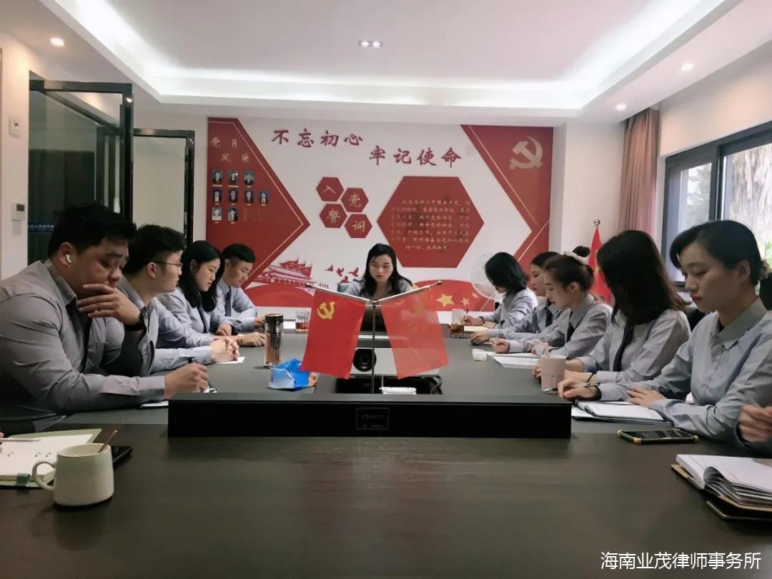开展党史学习教育,对于总结历史经验、传承红色基因、深入学习领会习近平新时代中国特色社会主义思想、引领广大党员律师从党的百年伟大奋斗历程中汲取继续前进的智慧和力量、加快推进海南全面深化改革开放和中国特色自由贸易港建设争创一流业绩具有重大而深远的意义。海南业茂律师事务所及其党支部高度重视党史学习教育工作,接下来,律所全体成员将深刻领悟此次会议精神,结合律师专业优势,将党史学习教育精神发挥到律师工作的方方面面,以更加优异的成绩向建党100周年献礼。