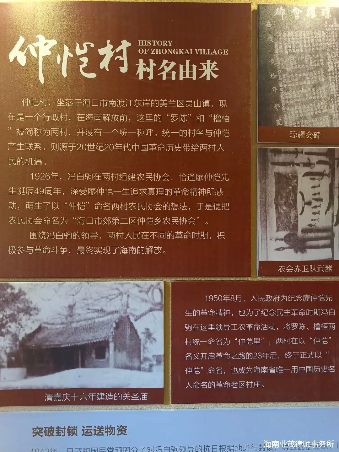 在本次“七一”党建主题活动,业茂党支部选择了仲恺农民协会旧址进行参观学习。仲恺村不仅是爱国主义教育基地,还是江东新区美丽乡村建设示范点。仲恺农民协会旧址位于海口市美兰区灵山镇仲恺村口江东新区仲恺村,是著名的红色村庄,1926年冯白驹在此建立农民协会以来,它就跟海南岛的革命活动紧密相连,涌现无数可歌可泣的英雄事迹。